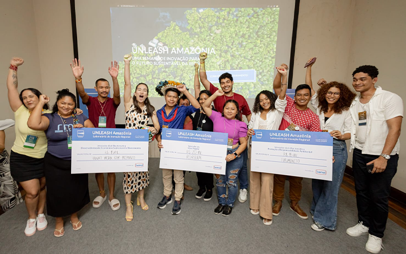Foto: Reprodução | Com o objetivo de transformar a realidade de suas comunidades, 107 jovens de todos os estados da Amazônia Legal participaram do UNLEASH Amazon Innovation Lab, programa que visa capacitar pessoas para desenvolver soluções inovadoras e sustentáveis em nível local. A iniciativa encerrou no sábado (19/10), com uma cerimônia de premiação no Palacete Provincial, no Centro de Manaus, que reconheceu os três melhores projetos com prêmios de R$ 15 mil e R$ 20 mil.