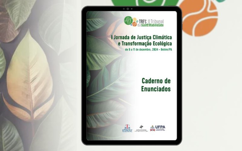 A Escola de Magistratura Federal da 1ª Região (Esmaf) lançou o Caderno de Enunciados da 1ª Jornada de Justiça Climática e Transformação Ecológica, fruto das reflexões promovidas durante o evento realizado em dezembro do ano passado em Belém (PA). Dos 38 enunciados aprovados, 12 foram elaborados com a participação direta de membros do Ministério Público Federal (MPF).