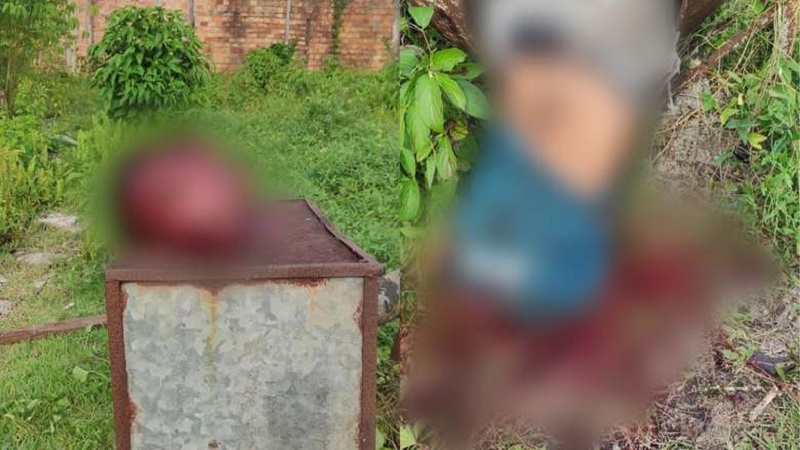 Nas imagens fortes, o corpo da vítima foi abandonado lavado em sangue dentro de uma peça de metal, enquanto a cabeça foi colocada em cima de uma caixa.