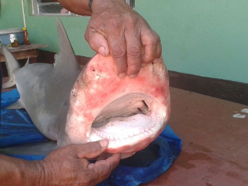 Um tubarão da espécie cabeça-chata (Carcharhinus leucas) foi capturado na manhã desta terça-feira (29) nas águas do rio Tapajós, na Enseada Grande, região perto da comunidade Pinduri, no município de Santarém, no oeste do Pará. A espécie habita geralmente águas salgadas, mas tem capacidade de se adaptar e viver em água doce.