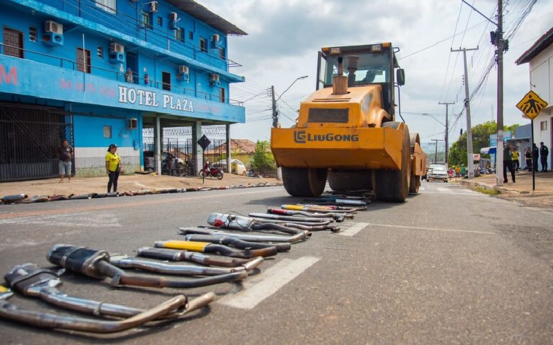 Tucuruí destrói 350 escapamentos do tipo ‘kadron’ apreendidos em ações policiais
