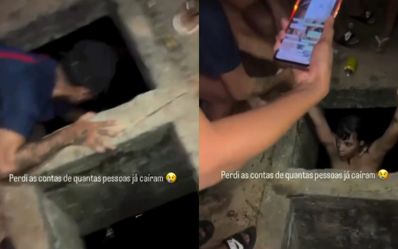 Vídeos que circularam amplamente nas redes sociais registraram o momento do resgate improvisado. Nas imagens, é possível ver frequentadores da praia correndo para ajudar e puxando a turista para fora do bueiro. Apesar do susto e do contato direto com água de esgoto, ambos conseguiram sair sem ferimentos graves. Após o atendimento inicial feito pelos próprios banhistas, o casal deixou o local.