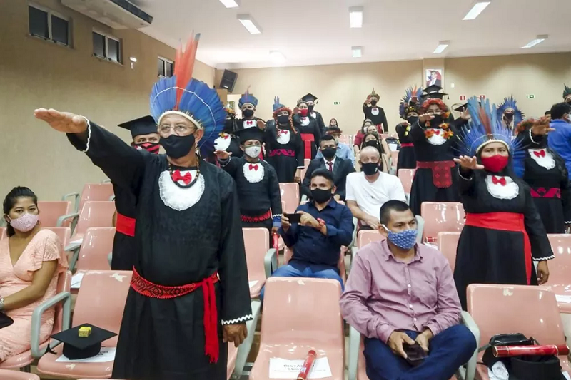 A cerimônia, presidida pelo reitor Rubens Cardoso, foi realizada no formato on-line e transmitida simultaneamente para as turmas compostas por 33 colandos Tembé Gurupi; 22 do povo Assurini do Trocará e 45 do Território Etnoeducacional Tapajós-Arapiuns.