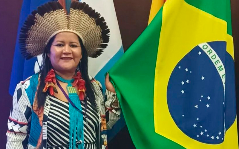 Em um ano, Kerexu Yxapyry participou de vários eventos nacionais e internacionais ligados à demarcação de territórios indígenas (Foto: Divulgação, Redes Sociais)