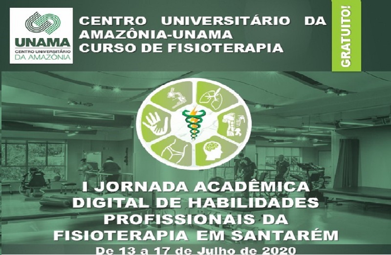 Será realizada em Santarém a I Jornada Acadêmica Digital de Habilidades Profissionais da Fisioterapia da UNAMA – Centro Universitário da Amazônia. A atividade acontece entre os dias 13 e 17 de julho, por meio da plataforma digital da Microsoft Teams, sempre a partir das 8h.