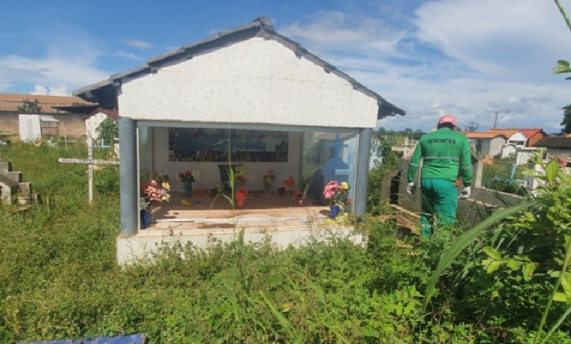 O cemitério estava sendo roçado por uma equipe de seminfra.