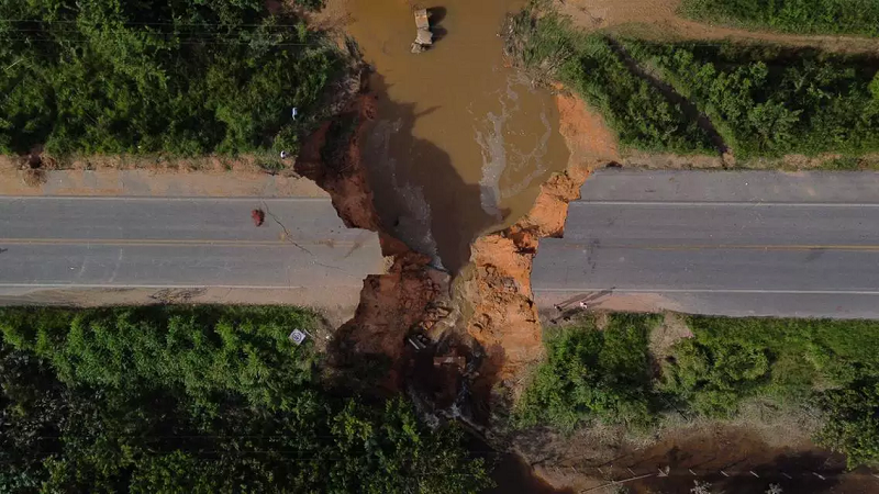 Veja como está a cratera que interditou o quilômetro 18 da rodovia BR-316