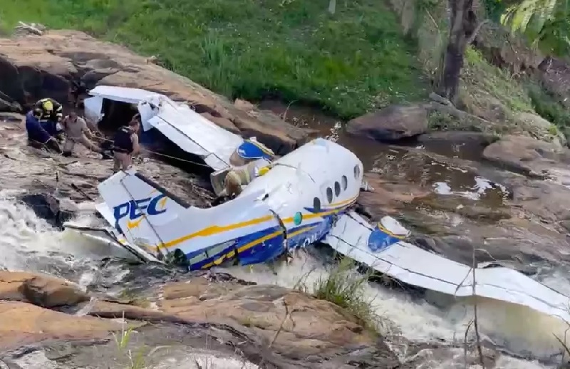 Causas do acidente e investigação: O capitão da Polícia Militar, Jefferson Luiz Ribeiro, disse que a aeronave caiu ao tentar realizar um pouso forçado. Segundo Ribeiro, o piloto teve problemas ao aterrissar no aeroporto, localizado a cerca de dois quilômetros do local do acidente.