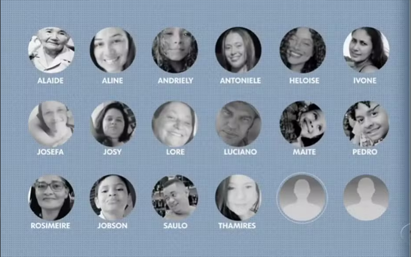 A lista se refere aos dezesseis corpos que foram liberados para sepultamento nesta segunda-feira (25). De acordo com o Instituto Médico Legal (IML), dois corpos ainda aguardam a identificação oficial da família.