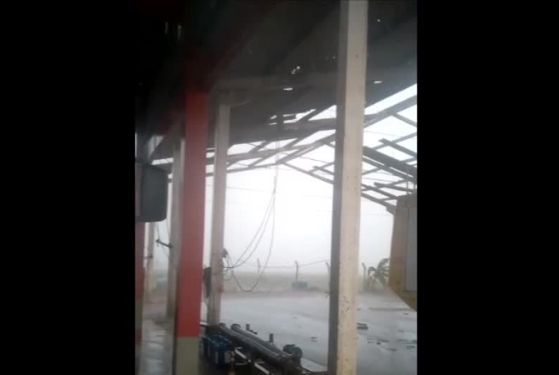 Um funcionário do aeroporto fez um vídeo com o celular. As imagens mostram o momento em que o vento arranca as telhas do local. Depois, as imagens mostram os pedaços de telha espalhados pelo pátio.
