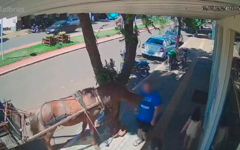 Vereador é mordido por cavalo em calçada no Paraná; veja o vídeo