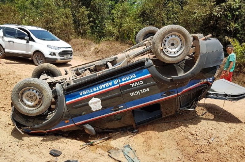 Uma viatura da Polícia Civil de Abaetetuba com quatro ocupantes capotou na altura do km-12 da rodovia BR-422, em Cametá, no nordeste paraense. De acordo com a Polícia Militar, que prestou apoio aos feridos, apesar do susto, nenhum dos policiais civis se feriu gravemente.