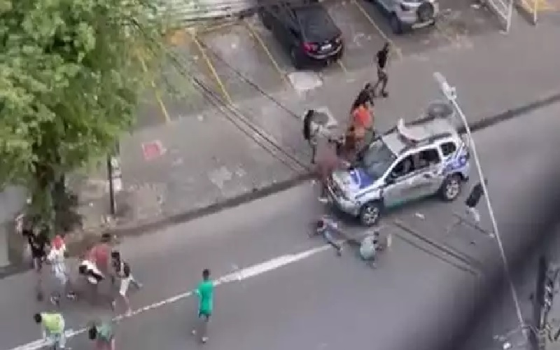 Viatura da PM atropela homens que brigavam no meio da rua em Recife