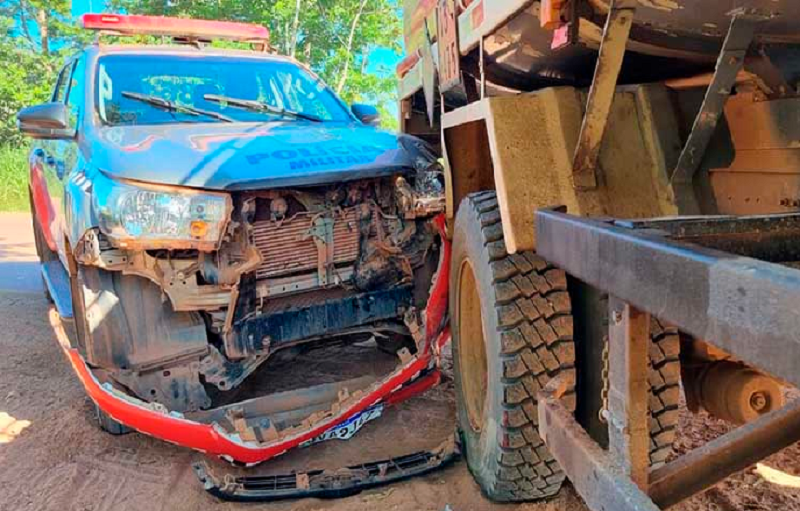 Viatura da PM colide contra caminhão-tanque em Itaituba