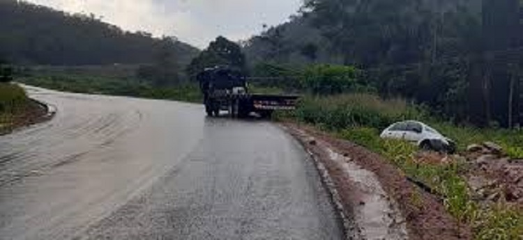 “Chovia muito no fim da tarde. O Exército está fazendo umas obras e, numa curva, o carro derrapou e não teve como segurar, atravessou a pista e saiu do outro lado. Graças a Deus, deu em um montão de pedras que têm lá senão a gente iria cair de uns 10 metros de altura. Mas as pedras seguraram o carro”, contou.