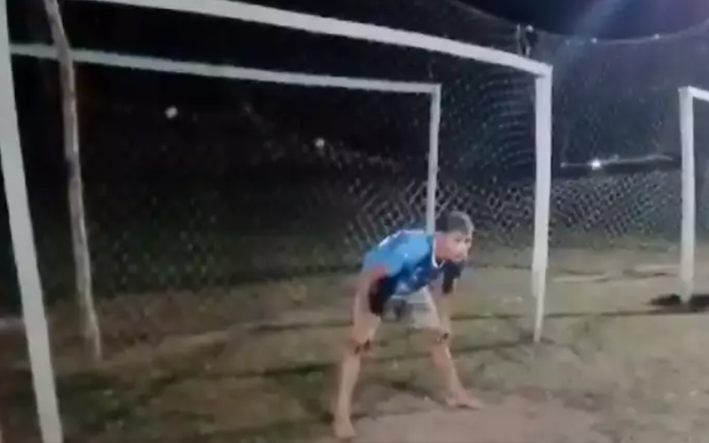 Em um vídeo divulgado nas redes sociais, é possível ver que a vítima era goleiro e, ao tentar defender um pênalti, acabou sendo atingido no peito. Após a bolada, o adolescente ficou caído no chão.