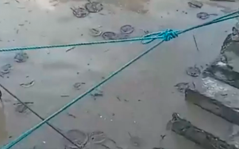 Em vídeo feito por moradores e/ou pescadores, é possível ver as arraias em uma espécie de maré baixa. Os animais aparecem entre várias embarcações.
