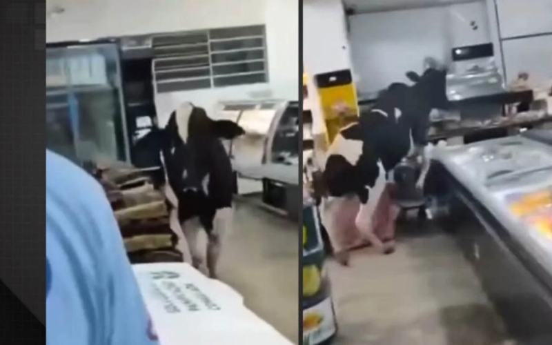 Vídeo: boi entra em supermercado e persegue açougueiro