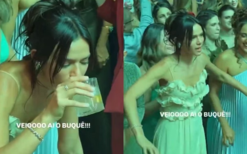 Vídeo: Bruna Marquezine viraliza na web ao surgir disputando buquê do casamento de Gi Lancellotti – Reprodução/ X