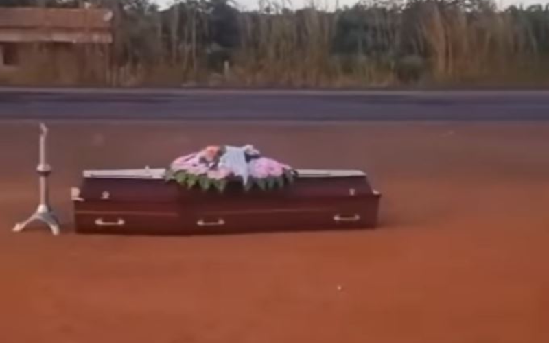 Um vídeo mostrando o caixão com uma coroa de flores em cima foi divulgado em páginas nas redes sociais. A urna estava no acostamento, ainda com uma cinta que o amarrava ao veículo e um suporte.