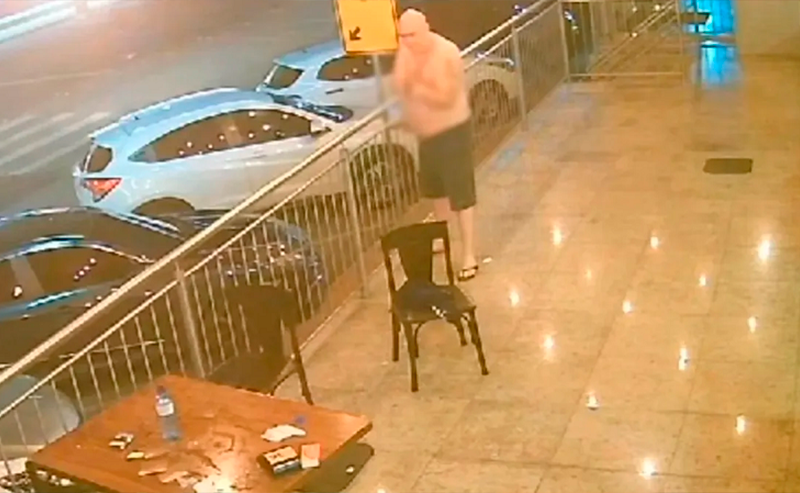 Momentos depois, a delegada aparece acompanhada de um homem e passa a repreender o agressor. Os envolvidos iniciam uma briga, e, em dado momento, o agente chega a sacar a arma dentro do bar e ameaça os clientes.