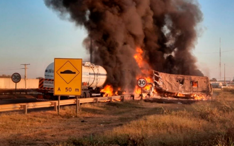 Com o primeiro impacto, o caminhão-tanque bateu na traseira do ônibus e houve a explosão. Os três veículos foram incendiados e várias pessoas ficaram feridas.