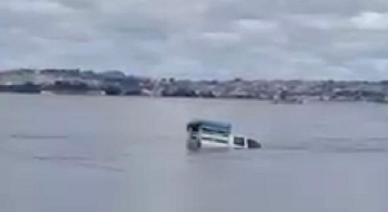 O motorista não estava dentro do veículo e ninguém se feriu. A balsa continuou o trajeto de travessia e está sendo providenciada a retirada do veículo do rio.