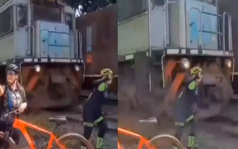 Uma ciclista foi atropelada por um trem enquanto tentava tirar uma selfie ‘radical’ com o veículo em movimento. O incidente, que aconteceu em Minas Gerais, foi filmado por um amigo da vítima na semana passada e viralizou nas redes sociais.