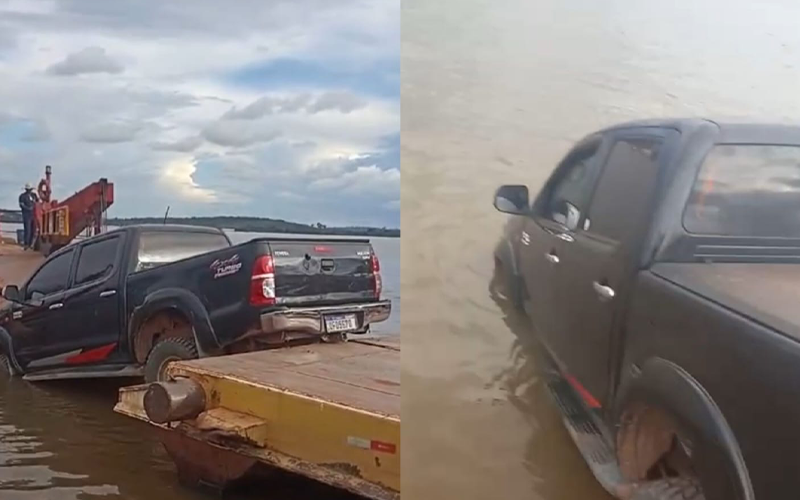 O condutor de uma caminhonete passou por momentos de tensão ao tentar entrar em uma balsa em movimento e o veículo afundar no Rio Tapajós, em Itaituba, sudoeste do Pará. O caso aconteceu no porto da cidade, na tarde desta quinta-feira (13).