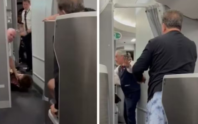 Em um vídeo do momento, é possível ver quando ela é derrubada no corredor da aeronave. Um outro homem, ao perceber a confusão, começa a gritar com ela, com os comissários e com outro passageiro. (Veja abaixo).