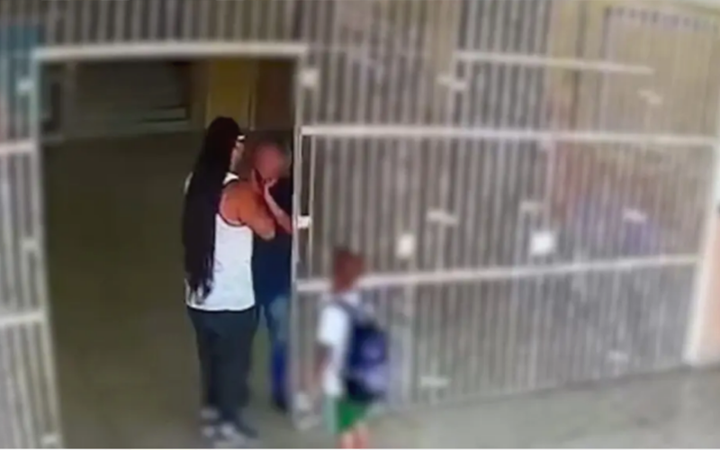 O videomonitoramento do centro estudantil mostra quando o homem chega intimidando o cuidador. Já atrás da grade do que parece ser o portão, é possível ver quando outros profissionais que trabalham no espaço chegam.