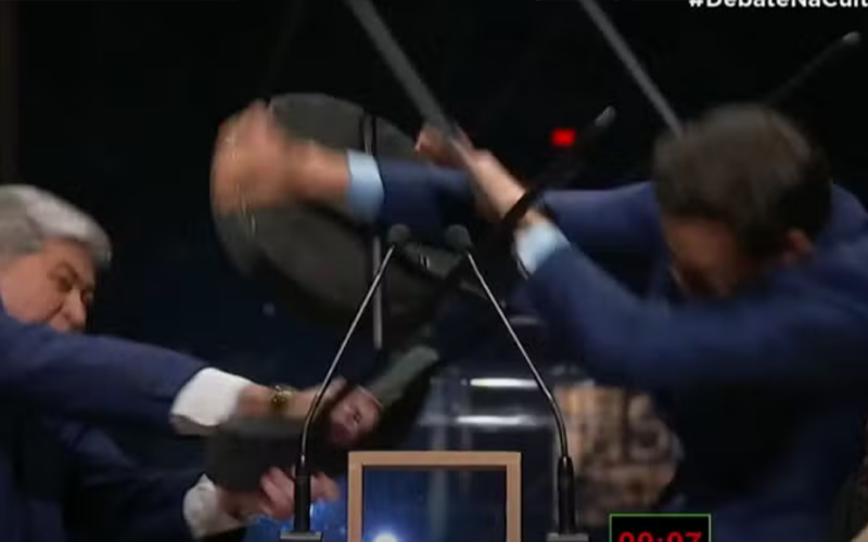 VÍDEO: Datena agride Pablo Marçal com cadeirada durante debate em São Paulo