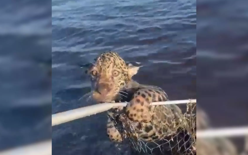 Pescador ‘fisga’ filhote de onça e ajuda animal a atravessar rio no Pantanal (Reprodução/Redes Sociais)