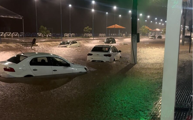 Foto: Reprodução | Uma forte chuva atingiu alguns bairros de Santarém na madrugada desta sexta-feira (17), por volta de 1h, e deixou a orla da cidade completamente alagada. Vídeos mostram ruas tomadas pela água, com níveis elevados que cobriram parte dos veículos.