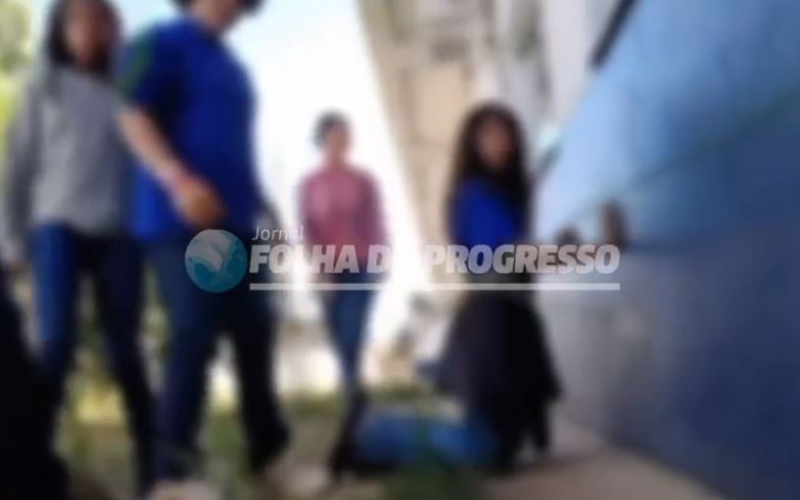 Foto: Reprodução | Uma adolescente foi agredida cruelmente por várias colegas, dentro da Escola Estadual Carlos Hugueney, em Alto Araguaia (415 km ao sul de Cuiabá). A agressão foi registrada em vídeo, que começou a circular nas redes sociais nesta segunda-feira (4). Por meio de nota, a Secretaria de Estado de Educação (Seduc) informou que apura o caso de violência e a polícia também investiga a tortura.