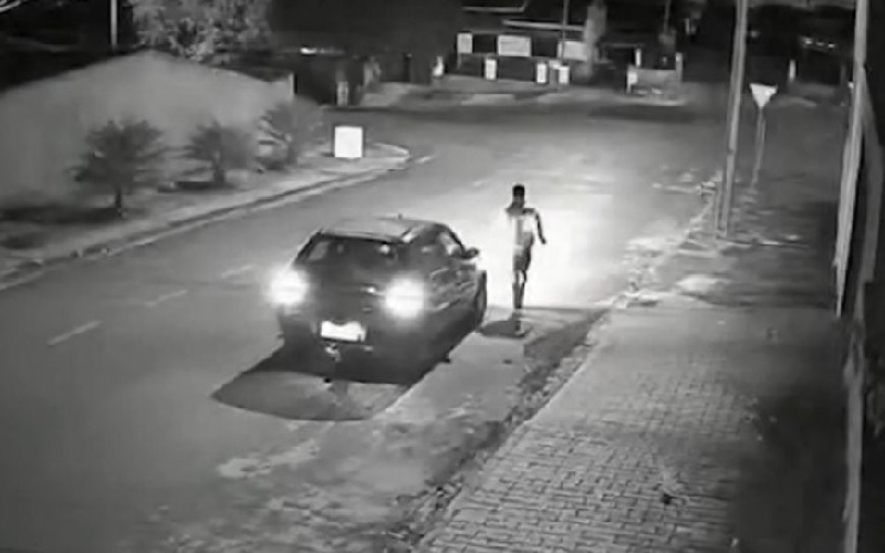 As câmeras de segurança do local flagraram o momento em que a vítima foi atingida após uma discussão com o autor, que foi retirado do evento por seguranças. Na sequência, o investigado passou a perseguir o homem, que tentava fugir a pé, até que o atropelou duas vezes com um carro. Após a perseguição, o agressor desceu do veículo e desferiu pelo menos três golpes de faca, fugindo logo após o ataque.
