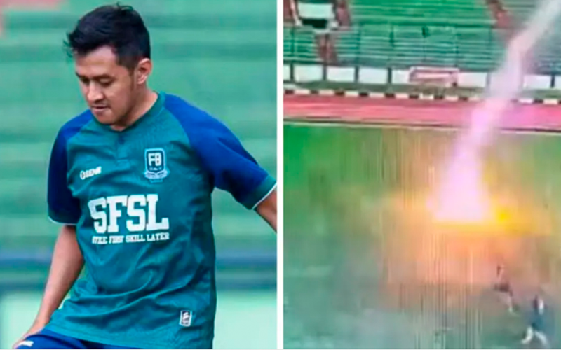 A footballer has been tragically killed after being struck by a lightning bolt while playing football in Indonesia.
