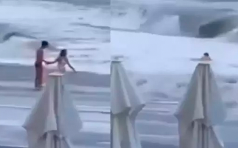 Casal é arrastado pelo mar enquanto caminhava em praia na Rússia (Foto/Reprodução/Redes sociais)
