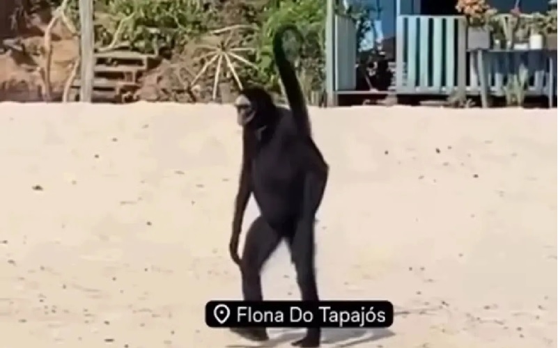 VÍDEO: Macaco-aranha surpreende turistas ao aparecer em praia da Flona do Tapajós, no Pará