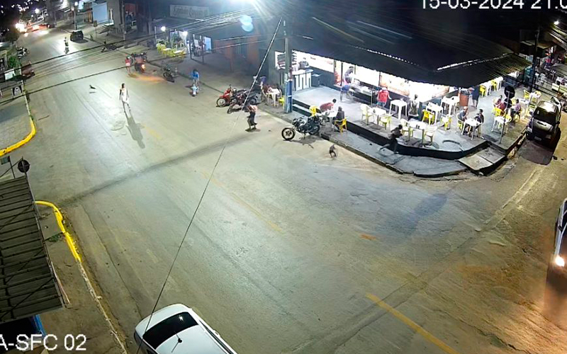 O assassinato ocorreu na noite de sexta-feira (16). Conforme as imagens, é possível ver que um homem pilotando uma moto Titan 125 se aproxima do local, uma espetaria que está em atendimento.