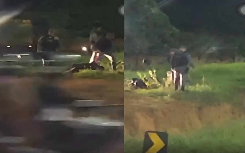 Vídeo mostra policiais jogando motociclista algemado em vala, no Mato Grosso
