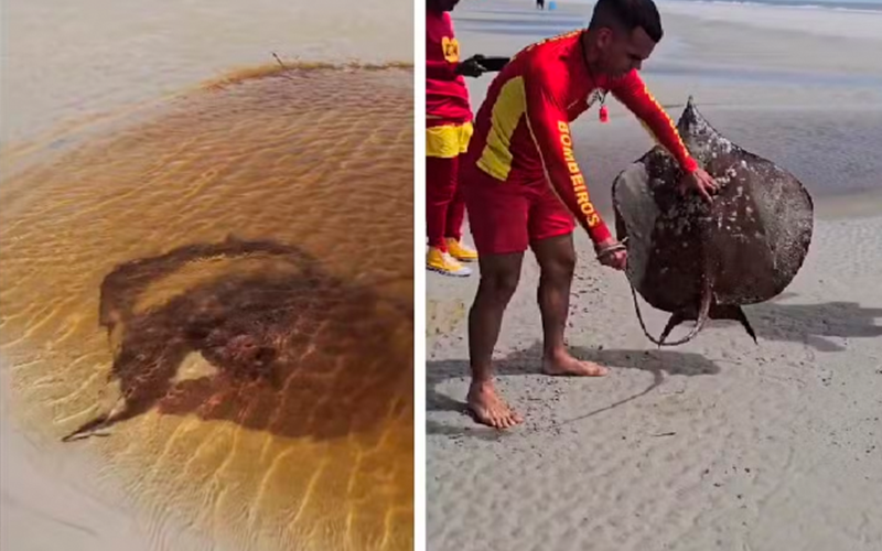 Vídeo mostra resgate de arraia lixa em praia no Pará; assista