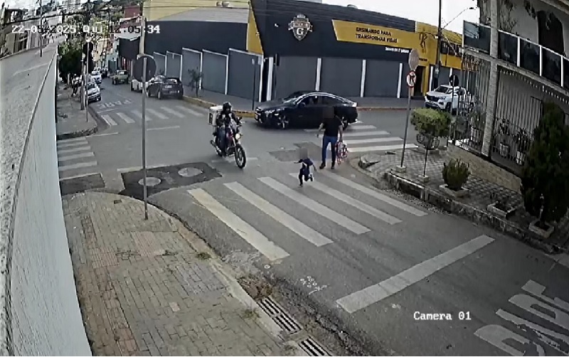 Nas imagens, é possível ver que o garoto, que seguia ao lado do pai, corre para atravessar na faixa de pedestres após a orientação do adulto, que olhou na direção de onde deveriam vir os veículos.