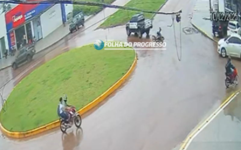 VÍDEO | Motociclista colide com caminhonete em rotatória de Av. em Novo Progresso (PA)