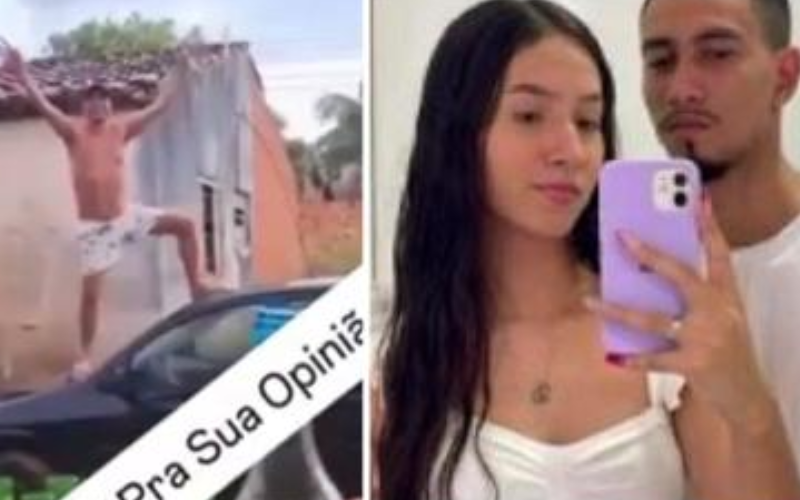 Foto: Reprodução | Um vídeo divulgado nas redes sociais mostra o motorista do carro Chevrolet Prisma dançando com uma garrafa de cerveja, em cima do veículo, horas antes do acidente que vitimou o casal de namorados Albert Teixeira Caetano Júnior, de 20 anos e Dannyele Almeida Ascari, de 18 anos. A batida aconteceu na noite de domingo (15), na MT-240, em Diamantino (a 208 km de Cuiabá). Veja: