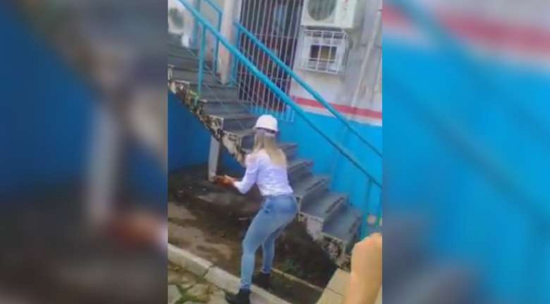 Vídeo: nova prefeita de Marituba aparece quebrando escada na Prefeitura a marretadas