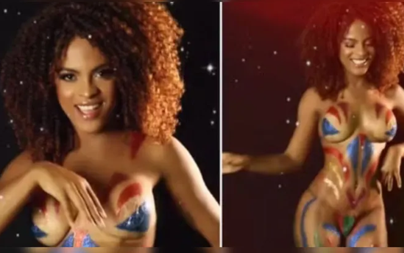 A modelo gravou um vídeo sambando nua, com o corpo apenas pintado por tintas e purpurinas e chamou atenção da própria Valeria, que compartilhou a homenagem em suas redes sociais. “Que linda. A nossa Globeleza do Pará é nota 10!”, escreveu.