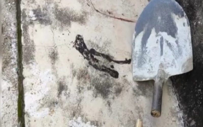 (Foto:Reprodução) – O golpe na cabeça do animal foi tão violento que a pá ficou quebrada sobre o concreto