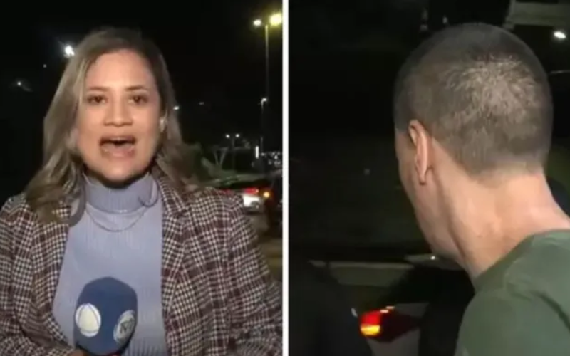 Jornalista e cinegrafista são atacados após acidente envolvendo o agressor; equipamentos foram danificados.