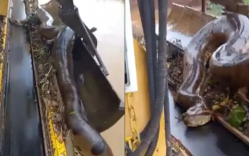 Sucuri gigante é encontrada presa em máquina de usina elétrica. Veja o vídeo! | Divulgação
